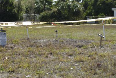 Back in the truck. Well, at least now we knew what to look for. The search continued. We stopped and asked folks about the owls. Some had not even heard about them, others knew where vacated nest sites were located. ‘Round and ’round we went – oh look, there’s another empty lot with yellow ‘caution’ tape around it.