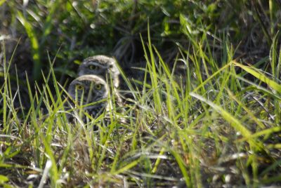Screech (not really, but that’s how it felt emotionally). Someone had spotted something peeking from one of the burrows. Out we jumped, cameras and tripod in hand, quickly moving towards the barricade tape and anxiously pressing shutter buttons. Ya gotta love motor drives. The poor owls didn’t have a chance. And yeah one of our group spooked them back down into their burrow.